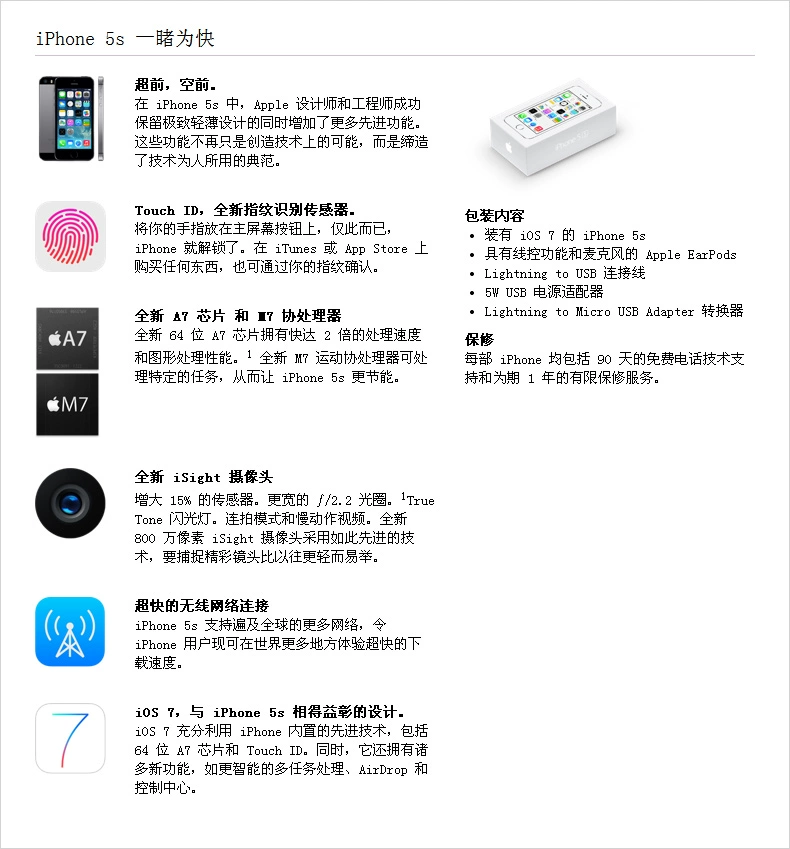 商品名称:Apple/苹果 iPhone 5S 商品颜色:金色、深空灰色、银色
