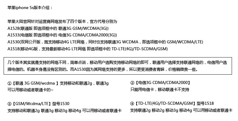 网络制式说明: